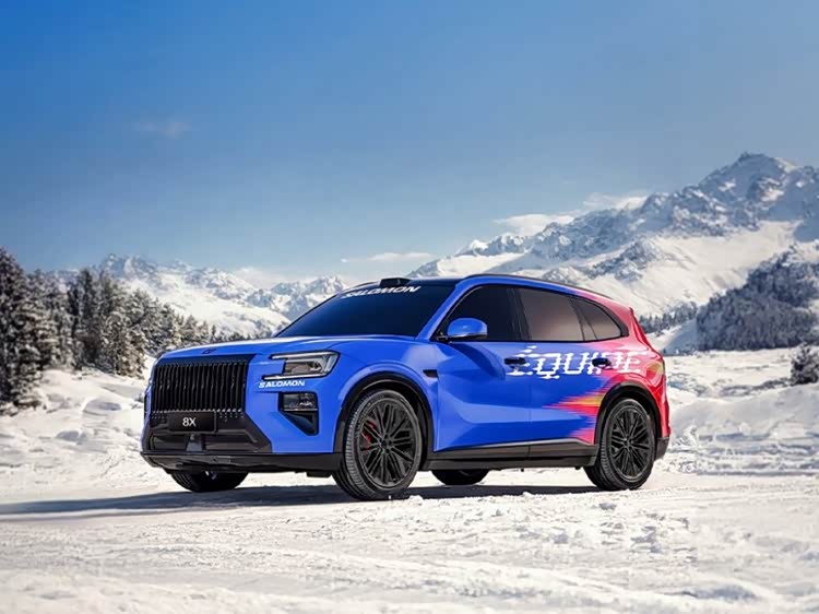 作为这场品牌合作的核心载体,极氪8X联名车衣的打造,不仅是视觉上的潮流表达,更是将萨洛蒙的“雪线基因”注入肌理。亮蓝色与黑色交织的车身涂装,复刻萨洛蒙冠军雪板的经典配色,车头醒目的“SALOMON”标识并非单纯的符号叠加,而是豪华高性能气质的具象表达;车顶专属雪板支架、适配冰雪路况的底盘等功能性配置,将极氪的顶级性能技术与滑雪场景的实用需求深度绑定。这种设计逻辑,寓意着8X不仅能驾驭城市道路的精致格调,亦能凭借可靠的性能储备与适应能力,从容奔赴雪原、探索旷野。