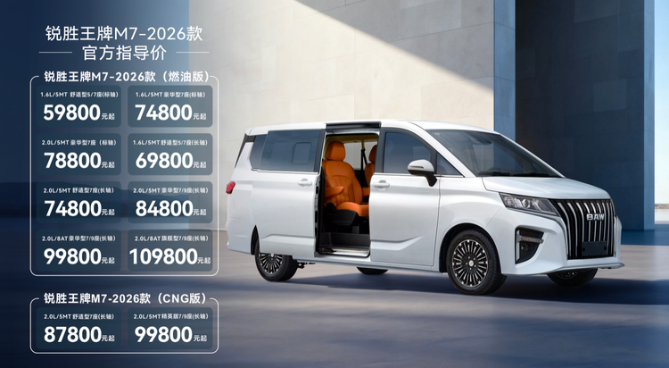 在10万元级MPV市场,用户早已习惯“要空间就别谈质感,要配置就别问价格”的妥协。然而,2026款锐胜王牌M7的到来,正在用5.98万元的起售价和10余项硬核升级,打破这一固有认知。