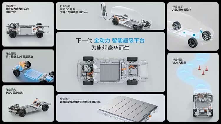 6、 因此,驾仕派猜测,魏牌V9X会搭载的技术包括但不仅限于:零百加速双4秒级的2.0T混联系统、800V混联架构、混动6C电池、纯电续航可超400公里的最大混动电池组、行业领先的ASL整车智能体以及行业领先的VLA大模型等。因为这些关键技术参数,是2025年5月,魏建军曾经在长城“全动力智能超级平台”发布的时候亲自公布的。这些高端技术如无意外,都将在归元S平台的首款车型上。