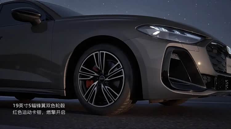外观层面,19 英寸双色轮毂、红色制动卡钳的加入,让这台 A5L 看起来更接近“轿跑定位”,而不是传统行政取向的中型轿车。