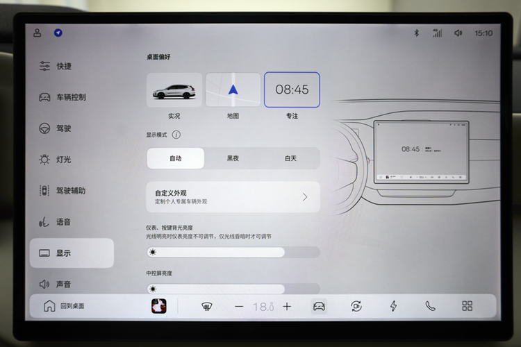 全新XC70车机系统中的专注模式,就出自于这一思考。这个模式开启后,车内中控屏将仅显示时间、日期这类信息,仪表也差不多只剩下时速这类开车的关键信息,目的就是当用户不想被各种纷繁复杂的信息所打扰时,着力实现极致的化繁为简。