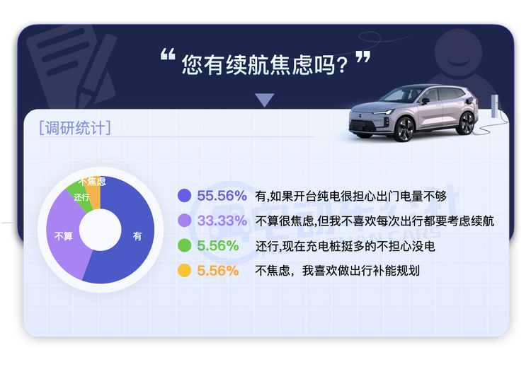 公社的调研中,绝大多数的沃尔沃XC70车主都存在续航焦虑,所以他们之中超半数最开始都是打算买一台燃油车。