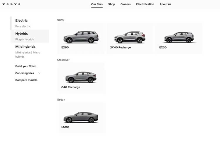 纯电方面,沃尔沃有EX30、EX40、EX90这样的主力车型,混动方面,沃尔沃更是为XC60、S90等全系车型配备了插混版本和48V轻混版本。