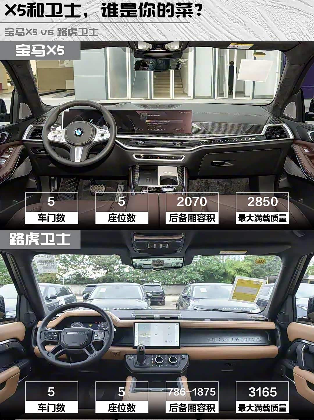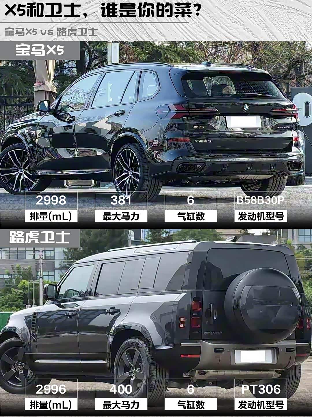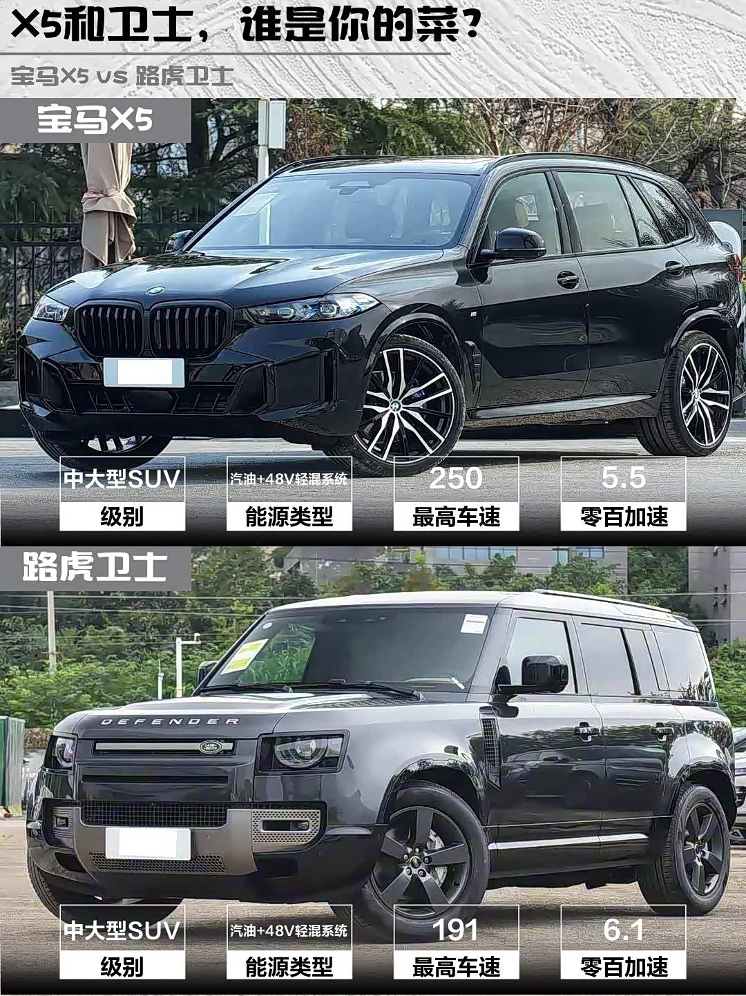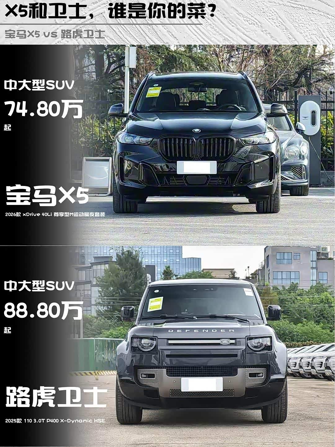 最近深度试驾了2026款宝马X5 xDrive 40Li尊享型M运动曜夜套装和2025款 路虎卫士(参数|询价)110 3.0T P400 X-Dynamic HSE,两款都是80万级豪华SUV的顶流选手,但性格截然不同!给纠结这两款车的兄弟们来个硬核对比🔥