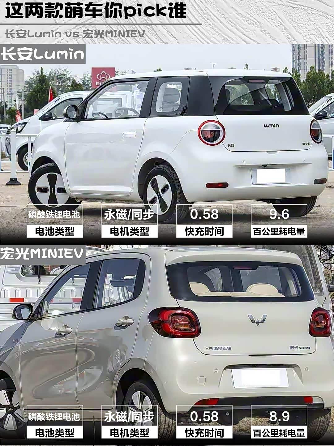 ▪️续航:两车标称都是205km,但实测Lumin宁德电池冬季打六折还能跑120km+,MINIEV开暖风直接腰斩到100km左右