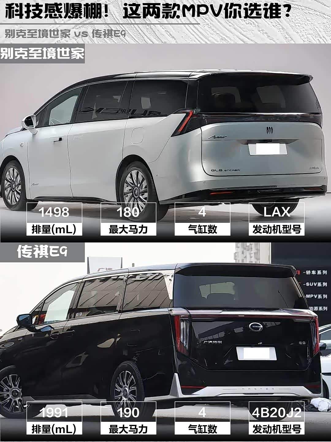 车家号·0浏览·2026-01-31 08:45 · 北京最近在选家用MPV的兄弟们看过来!今天深度对比两款热门插混MPV—— 别克至境世家(参数|询价)2026款尊享版🆚传祺E9 2024款贺岁版,看完这篇你就知道哪台更适合你!🔥