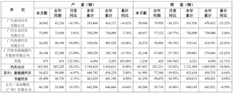 数据显示,2025年广汽集团年销量172.1万辆,同比下跌14.06%。其中,除了广汽丰田保持2.44%的同比微增外,其他三个子公司悉数下跌。