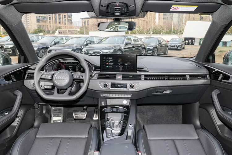 来到内饰,或许内饰设计不能讨好你,但绝对符合老司机的要求,毕竟审美方面还是见仁见智,这就看你个人喜好了。坐进车内布局和用料还是很奥迪,好在配有12.3英寸的液晶仪表,并且可以通过10.1中控屏共享信息,可以查看胎压,可以看到更多更直观的车辆信息。保留下的实体按键很多,进一步增强实用性,电子档把的手感也是得到老司机的好评,皮革的座椅包裹性很好,填充也很厚实,除了设计上缺少科技感,缺少仪式感,但在品控上也让消费者放心,所以省心和好用采用奥迪A4L核心卖点。