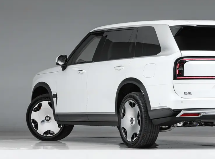 ZEEKR 9X号陆地游艇,也是消费者对“大”的认可,ZEEKR 9X的侧面没有过多装饰,或者更复杂的设计,使用更简单的线条勾勒出笔直的既视感,所以侧面给人一种很霸气很长的视觉效果。同时A柱车窗到D柱车窗都采用熏黑处理,也能为车身轮廓带来悬浮式的效果。黑色的包围和轮眉更是锦上添花,配合20英寸大饼轮毂,有将车身再次提高,让这台长宽高为5239*2029*1819毫米,轴距为3169毫米的SUV看起来更硬朗,更气派。那它尾部造型也是与“库里南”的设计相同,只是尾灯组改为长方形,并试图通过LED灯带勾勒出尾部的科技感,可以说不论哪个角度看ZEEKR 9X都很高级。