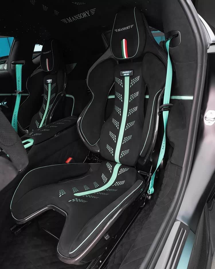 动力方面,原车搭载的是6.5L V12自然吸气发动机,原厂状态下最大功率830马力,峰值扭矩678N·m,但在Mansory升级了排气系统之后,最大功率提升到了855马力,峰值扭矩提升到了730N·m,匹配的依然是8速双离合变速箱,并采用了后驱布局,原厂状态零百加速2.9秒,改装后的性能表现并没有公布。