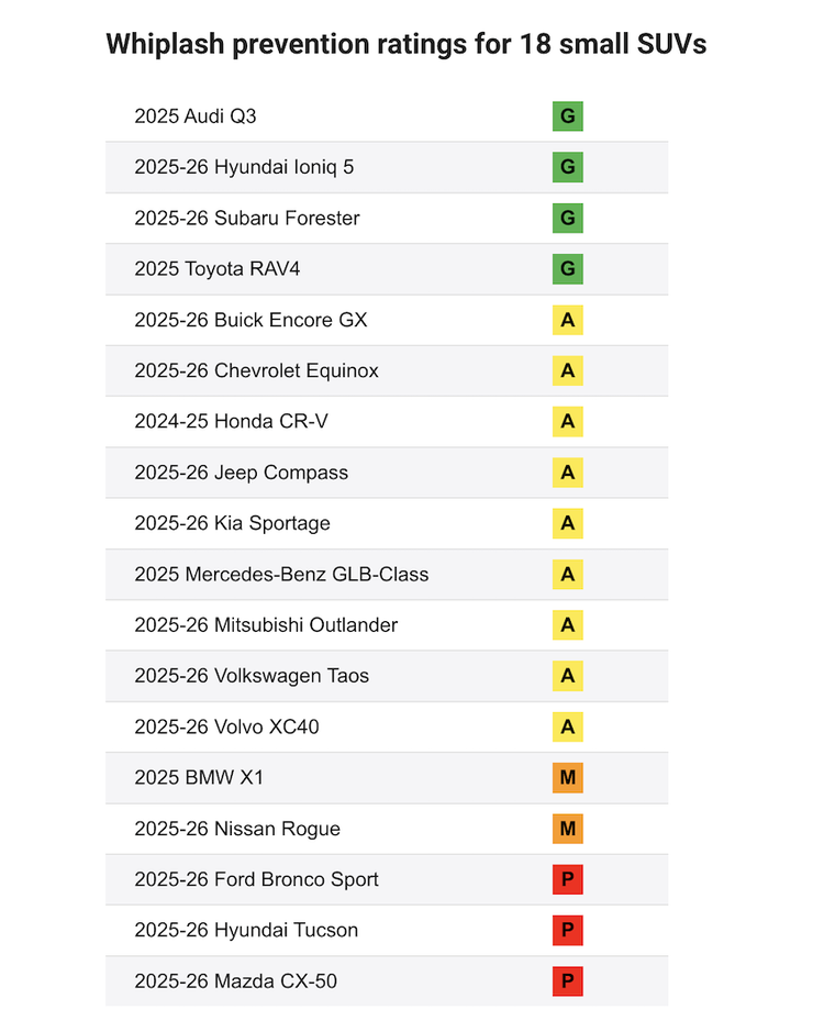 车家号·0浏览·2026-01-31 13:54 · 海南美国公路安全保险协会推出最新座椅与头枕评估,以了解追撞事故造成的颈部损伤,首批接受测试的 18 款 SUV 中,仅有 4 款获得 GOOD评级。