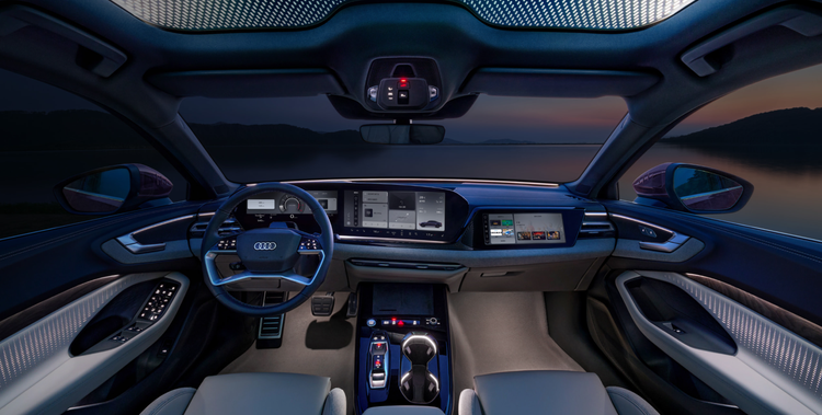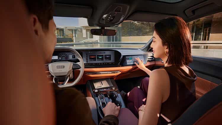 这款新车的内饰配备 14.5英寸触控OLED中控屏 + 10.9英寸副驾娱乐屏,11.9英寸全液晶仪表,语音识别支持“你好,奥迪”,具备双区唤醒、连续识别与可见即可说。车机支持CarPlay、5G网络、OTA升级。舒适性方面,标配仿皮运动座椅(主副驾电动调节、加热、通风),可选按摩(3000元)、驾驶位记忆(3500元)、后排加热(3000元);四区自动空调、PM2.5过滤、30色氛围灯。可选装Bang & Olufsen音响(16喇叭,7200元)、13.1英寸W-HUD(10000元)、星空天窗、场景灯语(8500元)、电动/感应后备厢(2900元)等。