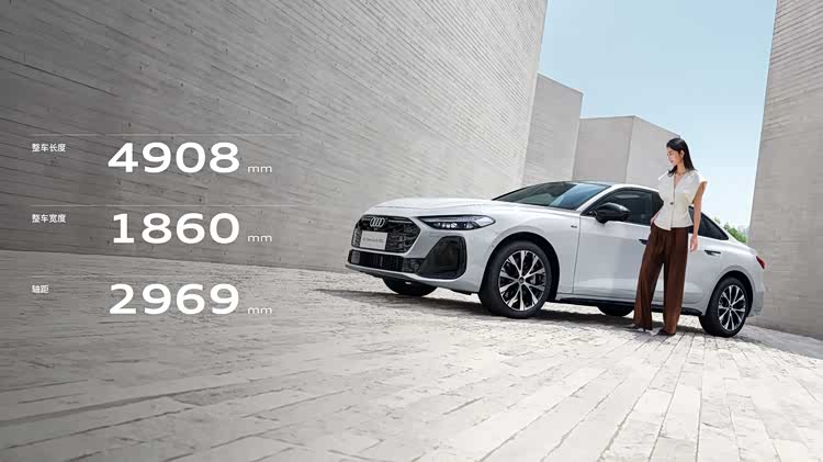 2026款奥迪A5L 2.0T 燃擎星驰版的车身长宽高为 4908×1860×1458 mm,轴距达 2969 mm,空间表现优于多数同级轿跑。溜背式三厢造型保留奥迪经典美感,标配19英寸铝合金轮毂(可选20英寸,加价3500元),前/后轮胎规格分别为245/40 R19与245/35 R20。最小离地间隙95mm,风阻表现优秀,兼顾城市道路与轻度非铺装路面适应性。