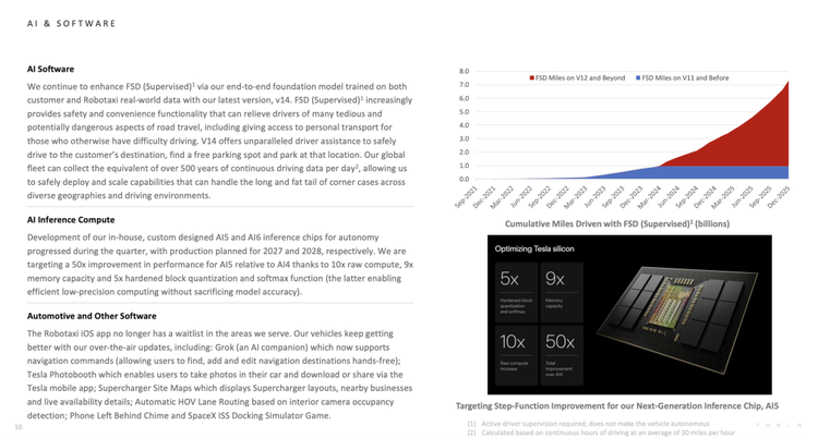 我们实际上会在我们的数据中心中使用AI5芯片。我们已经在我们的数据中心中使用AI4芯片。当我们进行培训时,这是AI4芯片和NVIDIA硬件的组合。我们主要用来进行培训。到十年末,事情变化如此之快,很难想象十年末会发生什么。