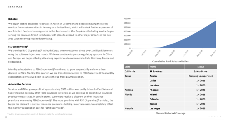 据特斯拉财报会上的数据,特斯拉FSD(Full Self Driving)2025年购买量同比增长一倍,全球付费用户已接近110万,其中近70%为一次性买断。