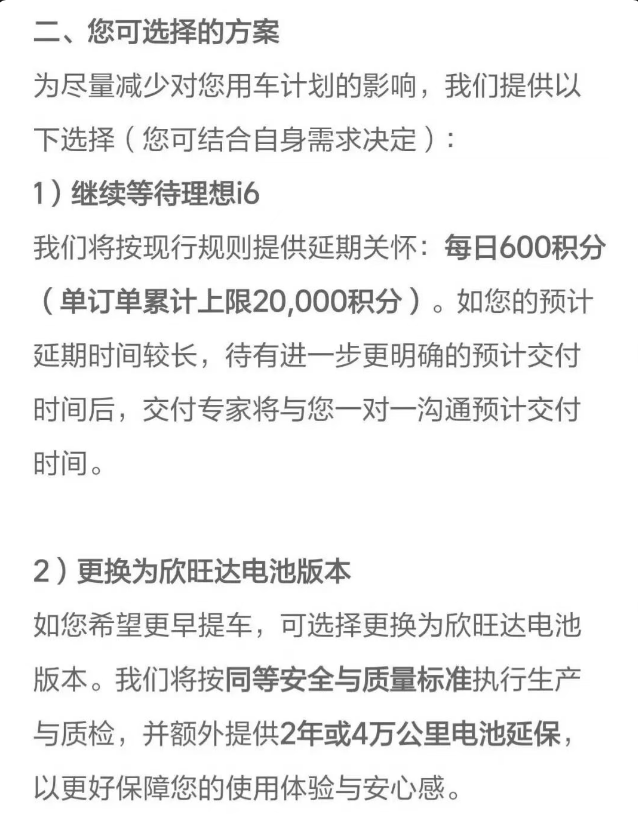 更糟的是供应链和交付的连环雷。i8 因为突然切换宁德时代电池,打乱了备货计划,李想喊出的“9 月挑战1万台”,最后只交出了惨淡的销量。i6虽吸取了教训,配置定价深得人心,订单直接爆了,却又卡在电池供应上,宁德时代产能跟不上,紧急引入欣旺达做双供应商,还是解决不了交付延迟的问题。
