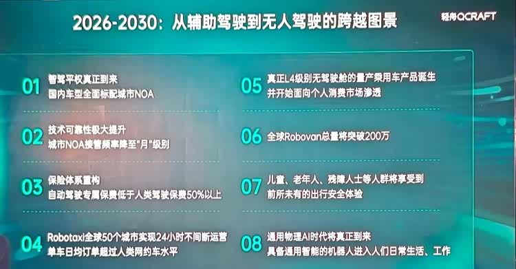 2026年是未来无人驾驶黄金十年的新起点,当10万块钱的车能把城市NOA跑得非常溜,离Robotaxi就不远了。