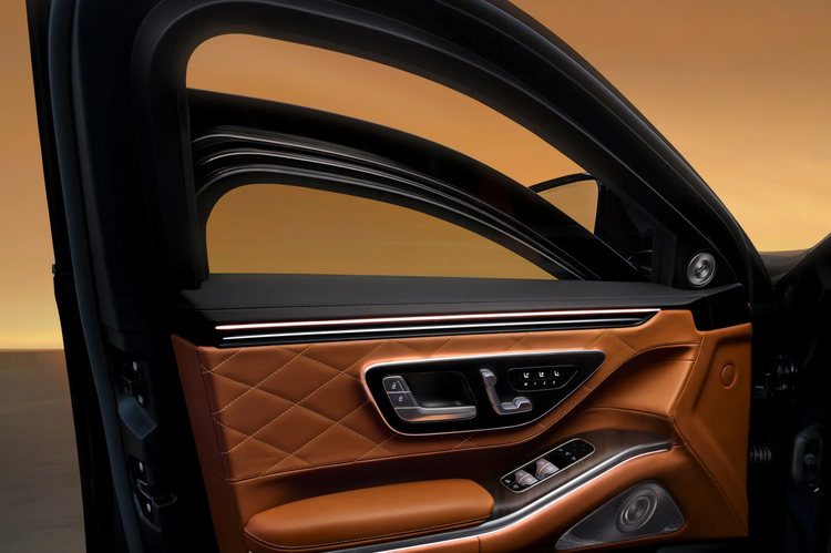 新款奔驰S级将新增AMGLine套件,包含AMG专属前保险杠(带大型进气口与镀铬装饰)、运动型后裙板、侧裙,以及最大21英寸AMG合金轮辋;内饰配套平底运动型方向盘、不锈钢踏板、专属音响系统与红色MBUX风格界面。