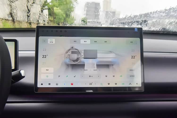 车内最显眼的是14.6英寸2.5K分辨率的中控大屏,显示效果很细腻。车机用的是高通骁龙8295芯片,操作流畅度不错,滑动、点按基本没有卡顿。