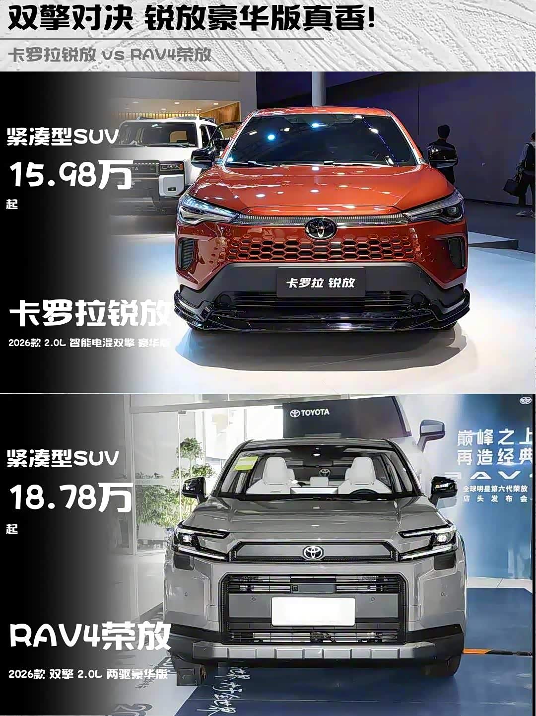 最近在纠结卡罗拉锐放2026款 2.0L智能电混双擎豪华版和 RAV4荣放(参数|询价)2026款双擎2.0L两驱豪华版?作为开过两台车的真实车主,掏心窝子分享对比体验🔥