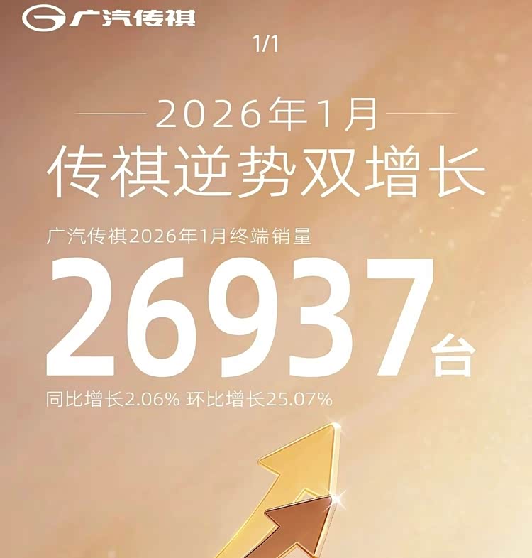 广汽传祺:2026年1月的销量为26937台