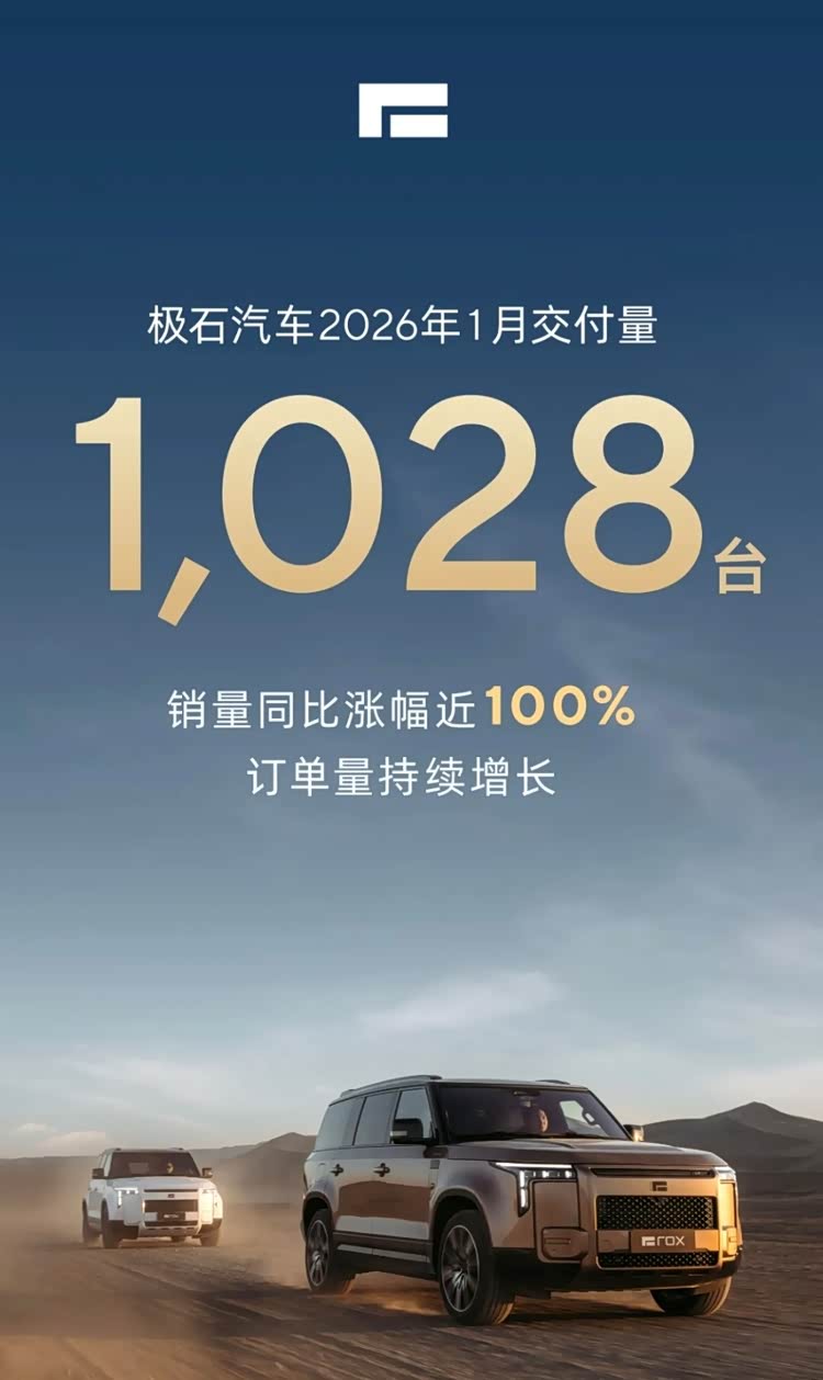 极石汽车:1月销量1028台