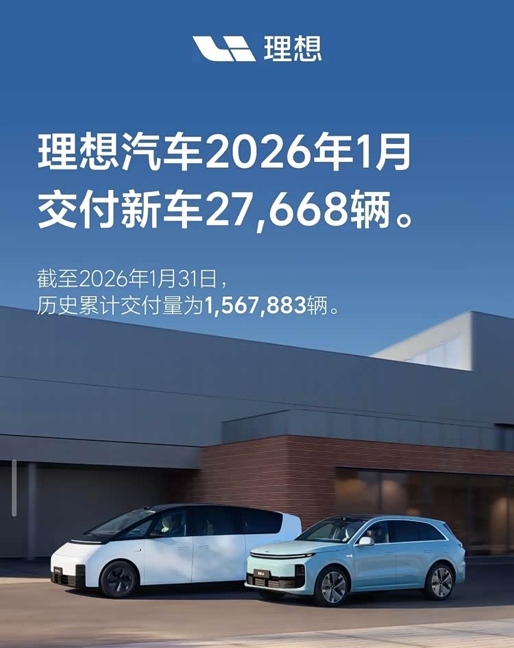 理想汽车:1月销量27668台