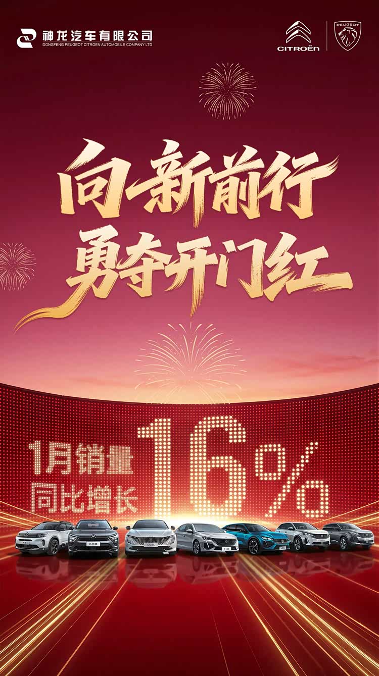 1月16%的同比增长,是东风标致与东风雪铁龙逆市突围的生动写照,更是新管理团队高效执行力与全体系协同发力的成果。面对复杂的市场环境,双品牌始终坚守战略定力,深耕渠道、优化服务、锻造品质,全力抢时间、抢市场、抢订单,用实干赢得了市场认可。未来,双品牌将继续推进“在中国 为全球”战略,持续深化变革、赋能终端,携手经销商与用户,共同实现高质量发展,书写品牌复兴的新篇章。