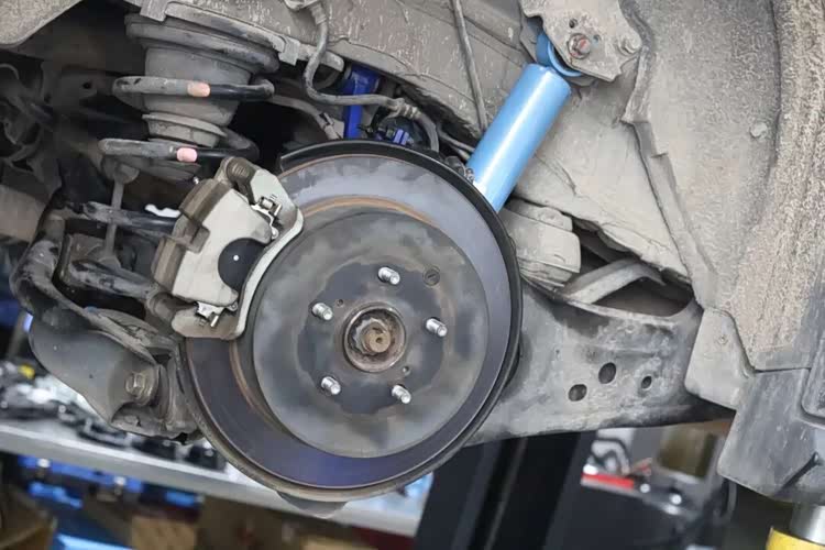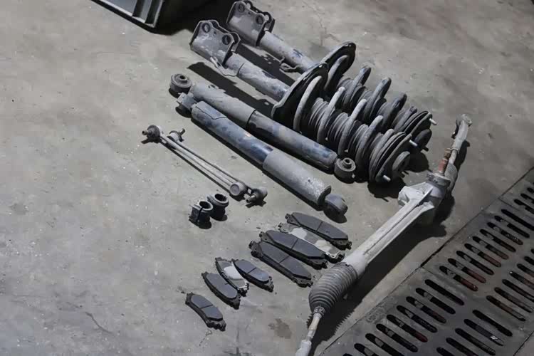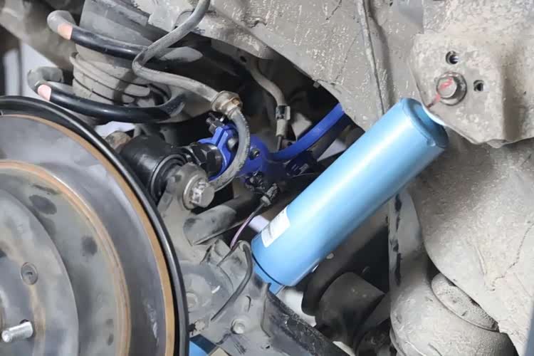 来到底盘方面,升级一套避震器及后悬挂倾角调节器,更换一下机脚、下摆臂、拉杆、球头、塔顶、防尘套、刹车皮等。