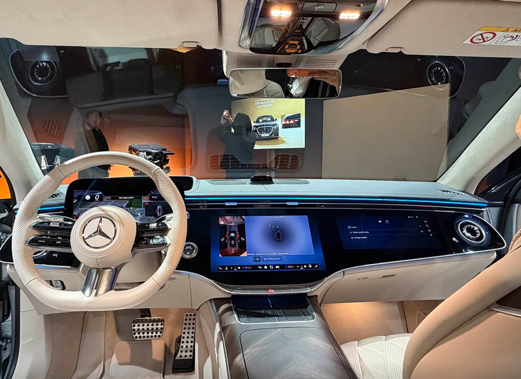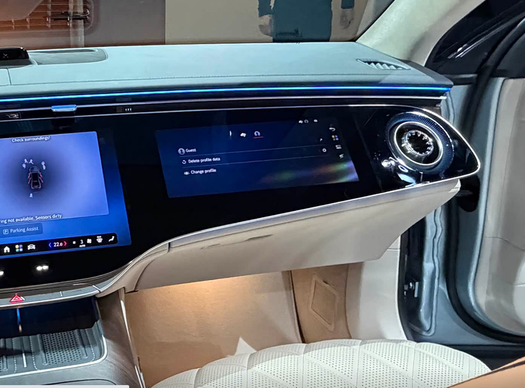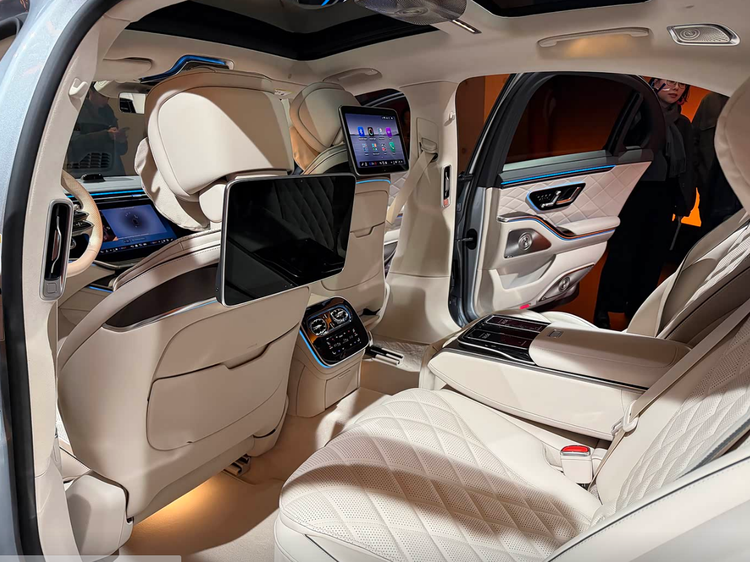 走进车内,内饰的设计应该是新款奔驰S级升级最大的地方,老款的奔驰S级采用的是一块很大的中控显示屏,和奔驰C级的设计理念很接近。而现在。全新的奔驰S级选用的是一整块大连屏,这个和当初EQS的设计理念是一样的,这个设计风格我觉得非常的豪华,并且科技感也非常的明显。这款车选用的是14.4英寸的中央触控屏,内置最新的MBUX智能人机交互系统,整合了ChatGPT4o、微软必应以及谷歌Gemini等生成式AI技术,让它的语音交互能力上有了一定提升。其次就是座椅上的座升级,前排座椅内置19个调节电机,提供乐式按摩等6种按摩模式。最重要的是,它还配备了可以加热式的安全带,可以加热到44℃,通过座椅加热按键即可开启。