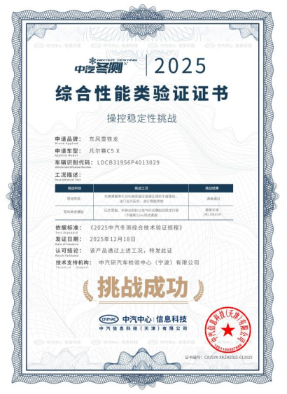此前,在中国汽车技术研究中心主办的“2025极寒驾控安全主题技术验证”中,东风雪铁龙凡尔赛C5 X与东风标致508L凭借出色的整车稳定性与安全操控表现,双双通过严苛测试,荣获“操控稳定性挑战”权威认证。其中,凡尔赛C5 X在雪地高速爆胎测试中,以140km/h的最高车速成功通过,在满载状态下顺利完成20%压实雪坡攀爬挑战;东风标致508L则在雪地双移线、雪地蛇形测试中展现出精准的操控功底。这一成绩不仅充分印证了两款车型在极限工况下的可靠性与安全功底,更获得央视等权威媒体报道,进一步放大了产品实力的社会公信力,让产品扎实的安全基因清晰传递给广大用户,为销量提升筑牢品质根基。