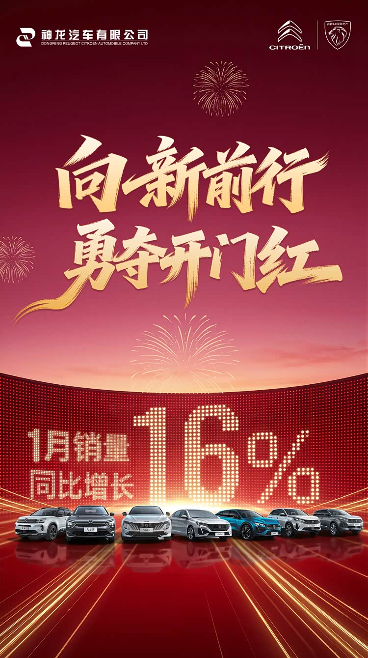 1月的16%同比增长,是东风标致与东风雪铁龙全力抢时间、抢市场、抢订单的实干成果,更是全体系竞争力在激烈市场角逐中的集中迸发。这一成绩的取得,离不开扎实高效的渠道体系、持续温暖的服务承诺、经得起严苛考验的产品品质,更根植于日益深厚的知音伙伴支持。未来,东风标致与东风雪铁龙将继续坚守“在中国 为全球”战略,携手经销商与广大用户并肩前行,深耕产品与服务,持续释放品牌活力,共筑高品质出行未来。