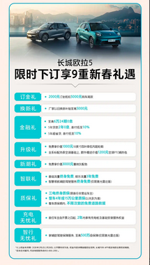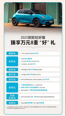 欧拉5在本次活动中支持2000元订金抵扣5000元购车尾款,适合希望降低首付款压力的用户。此外,厂方提供以旧换新补贴,最高可达5000元,并可选择两年期零利率金融方案。对于需要平衡购车成本和资金流的消费者,这种组合可在一定程度上缓解现金支出压力,同时通过以旧换新增加车辆置换灵活性。针对2025款欧拉好猫,厂方提供以旧换新补贴最高4000元,并支持24期零利率分期方案。具体而言,分期方案每期利息成本为零,使月供金额可控,便于日常预算安排。对于已经拥有旧车的用户,通过置换补贴可以进一步降低购车总成本,同时享受新车续航和智能配置升级带来的使用便利。