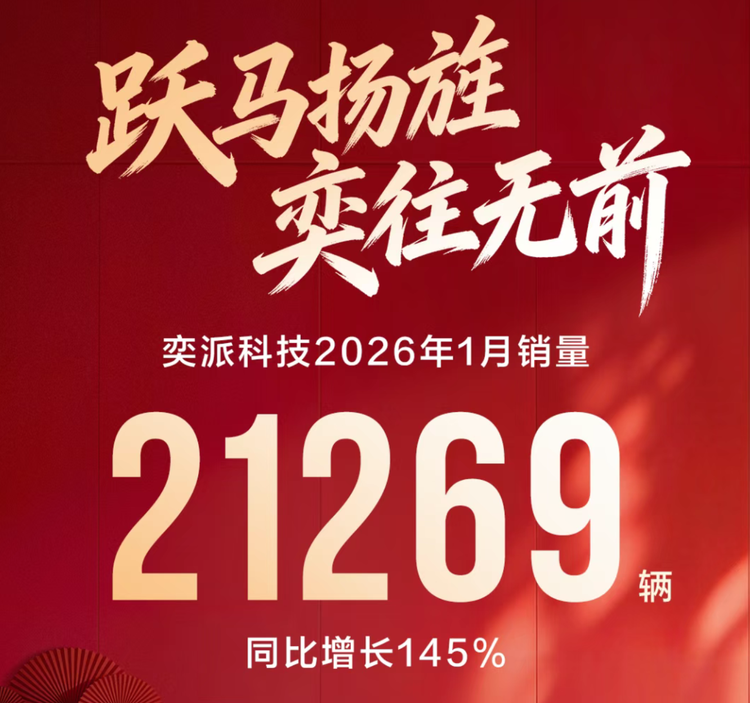 奕派科技2026年迎来爆发式开局,1月交付新车21269辆,同比大幅增长145%。销量的增长印证了其坚持的“用户共创”理念与产品策略正持续获得市场回报。