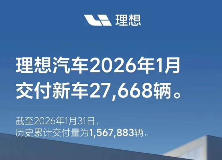 理想汽车2026年开局承压,1月交付新车27,688辆,同比出现约7.5%的下滑。在当前激烈的市场竞争环境下,这一表现反映出其短期增长面临挑战。