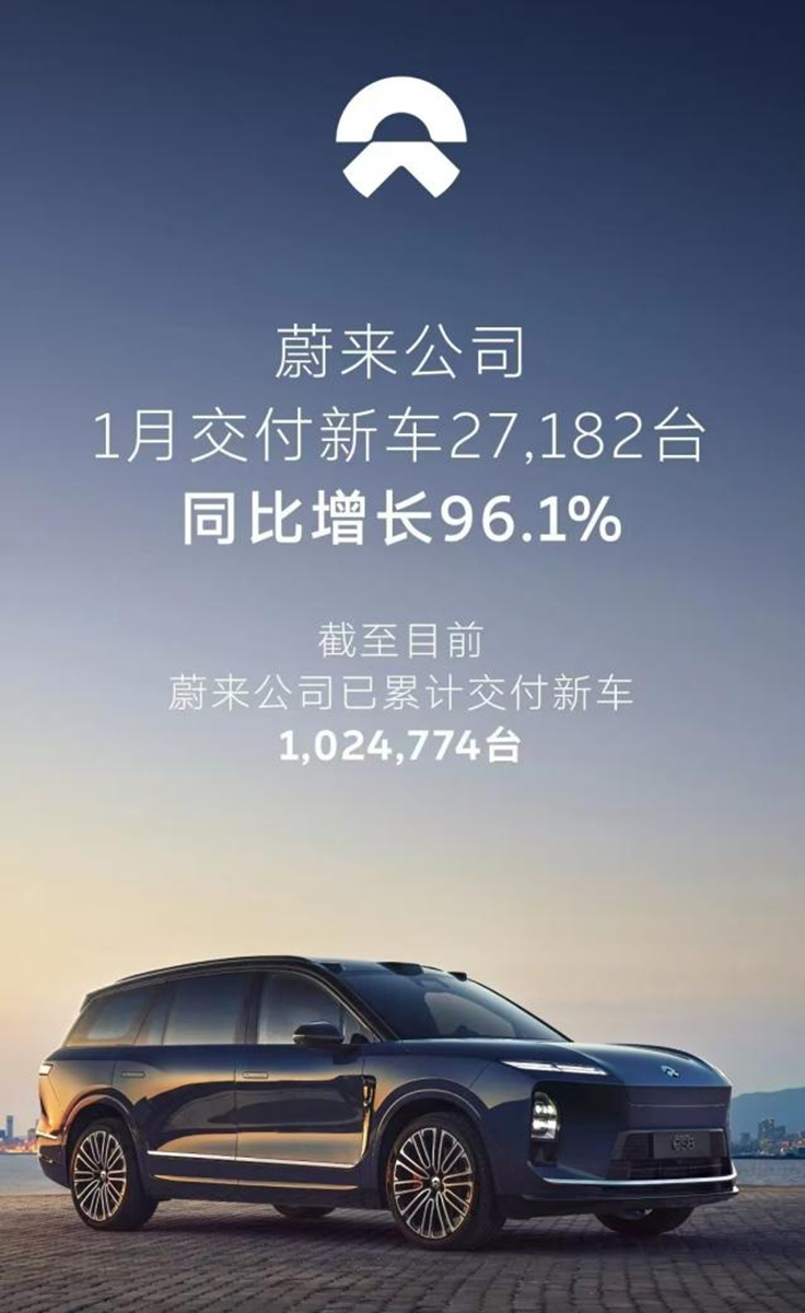 蔚来汽车1月销量27182辆