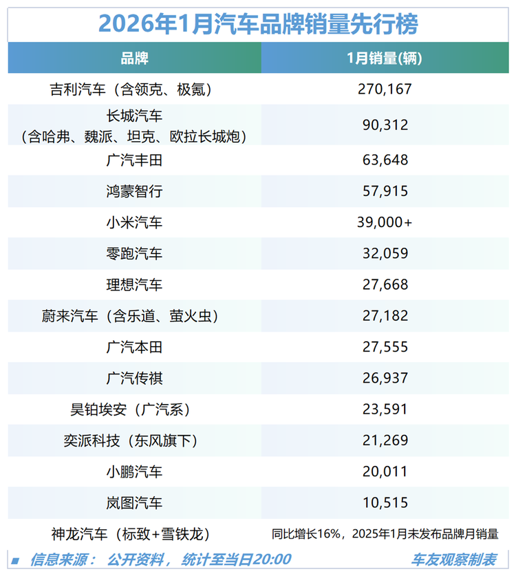 在2026年1月的销量先行榜中,广汽丰田反而成了“销量黑马”。