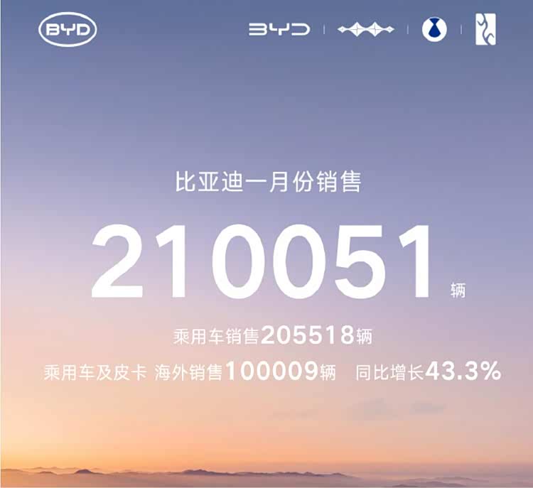 比亚迪率先发布1月份销量数据,新能源汽车销量210051辆,同比下降30.11%。这份销量中,最大的亮点是比亚迪海外销量,1月乘用车及皮卡海外销售100009辆。现在,车企出海大军浩浩荡荡,但比亚迪在海外市场布局速度很快,销量一路上涨,已成为整体销量主要的支撑点。