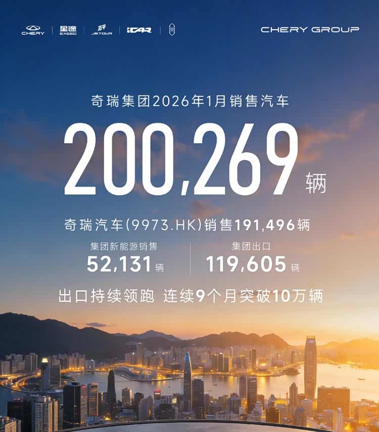 1月份,奇瑞汽车同样稳健开局,销量达到200269辆,现在,奇瑞越来越不“客气”,在国内和国外市场全面“开攻”。从当前得到的数据看,奇瑞集团1月份出口11.96万辆,同比增长48.1%,在出口方面,奇瑞不光是一位“老兵”,还是“排头兵”。