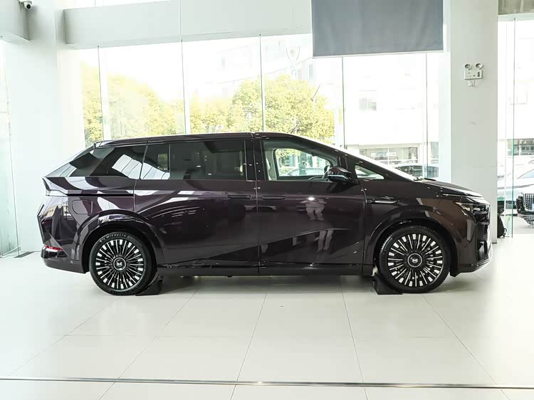 再来看车尾部分,新车的车尾采用外扩式飞艇造型,打破MPV尾部沉闷感,星轨一体式尾灯与车头贯穿灯形成首尾呼应,熏黑的配色结合精致的光源,夜间点亮后的辨识度拉满。尾灯线条随车尾轮廓舒展,搭配微微上翘的扰流线条设计,既优化空气动力学,又强化运动气质。后包围设计简洁干练,增程版配备隐藏式排气,纯电版则完全平整化处理,均保持车尾整洁度。