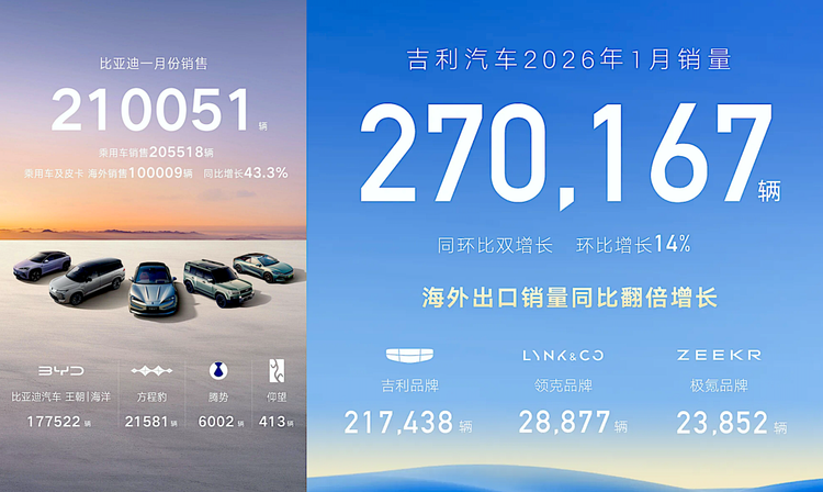 无论是比亚迪历史性超越大众汽车成为中国销量第一的车企,并在2025年以纯电动汽车销量第一超越了特斯拉,还是吉利率先完成了多动力和全球市场均衡布局,并有望在2026年超越比亚迪,中国汽车的精彩故事正在持续上演。