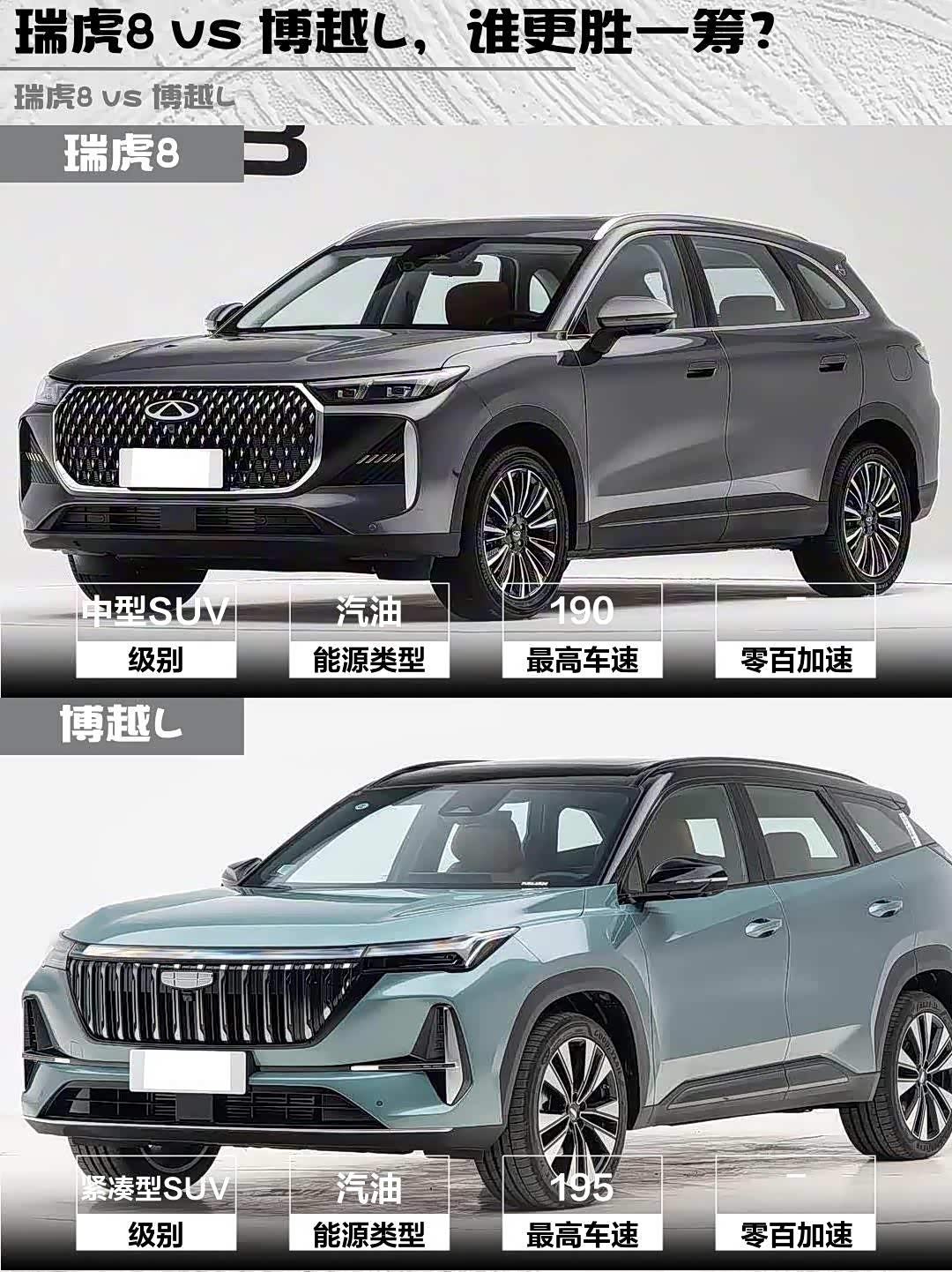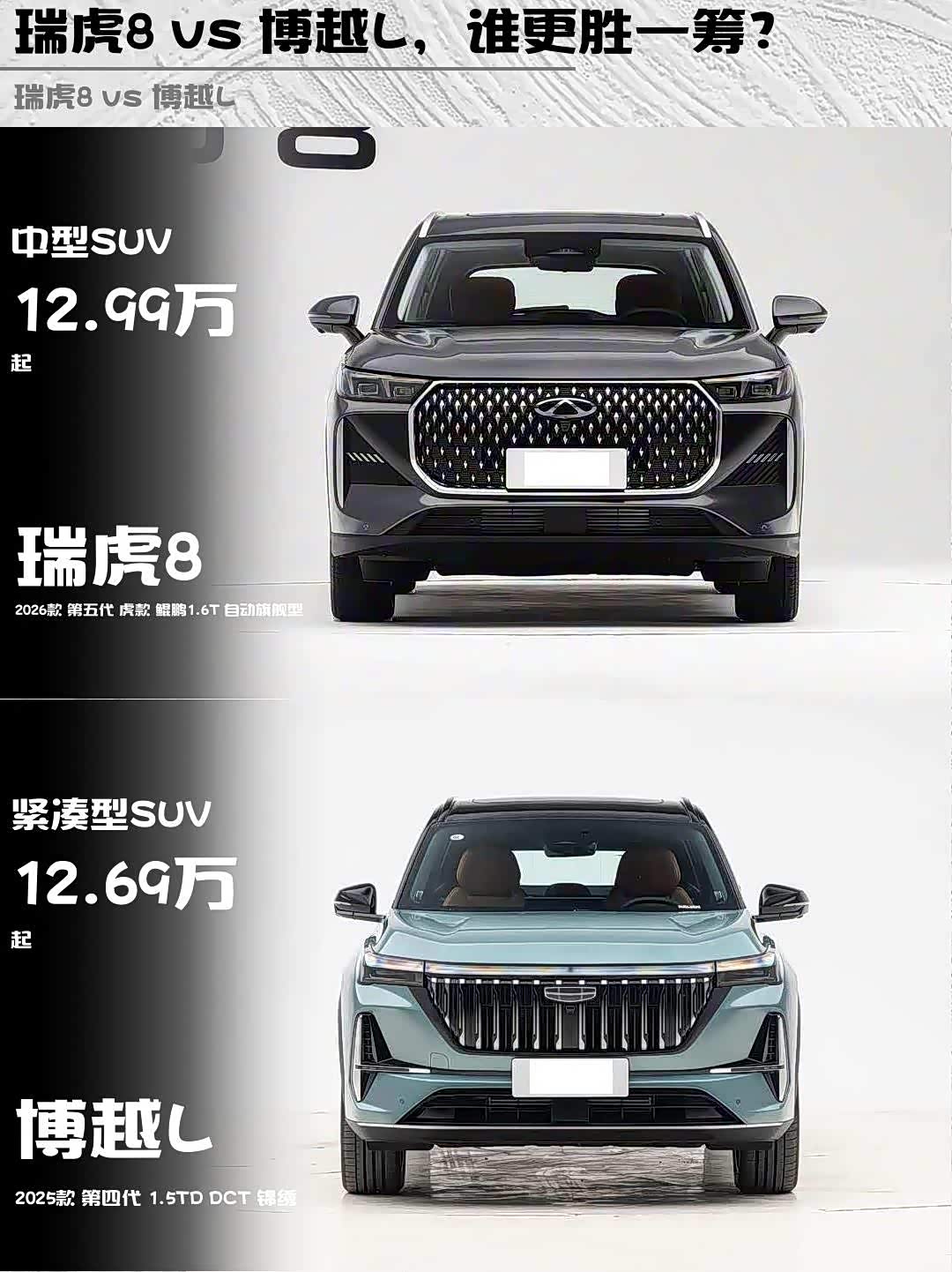 瑞虎8 vs 博越L,谁更胜一筹?