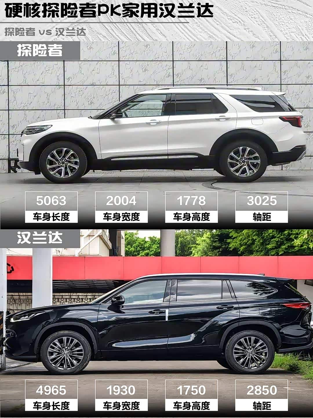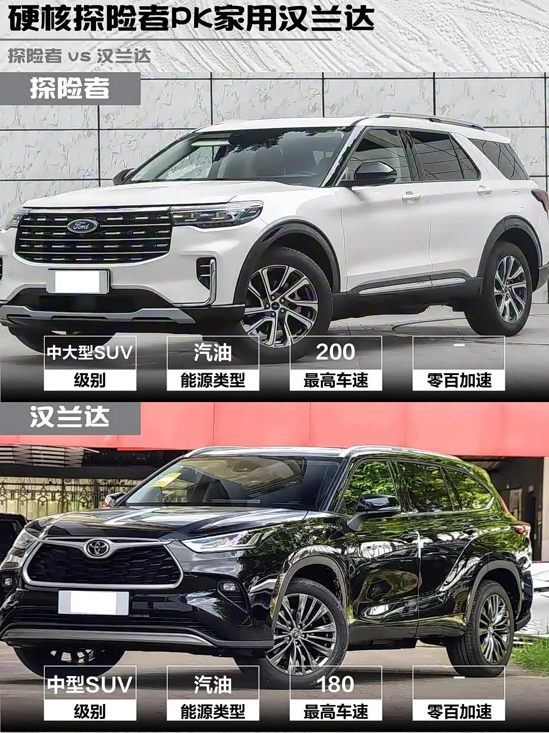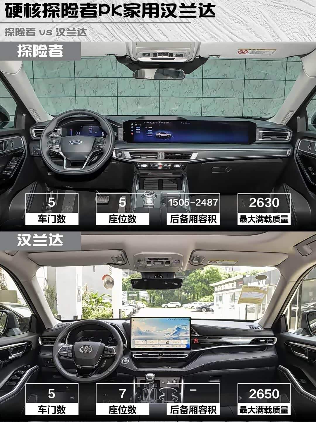 最后说句大实话:汉兰达像穿西装的暖男,探险者就是披西装的硬汉!要带全家7口买菜就选汉兰达,想周末去野去浪必须探险者!你们会pick哪款?
