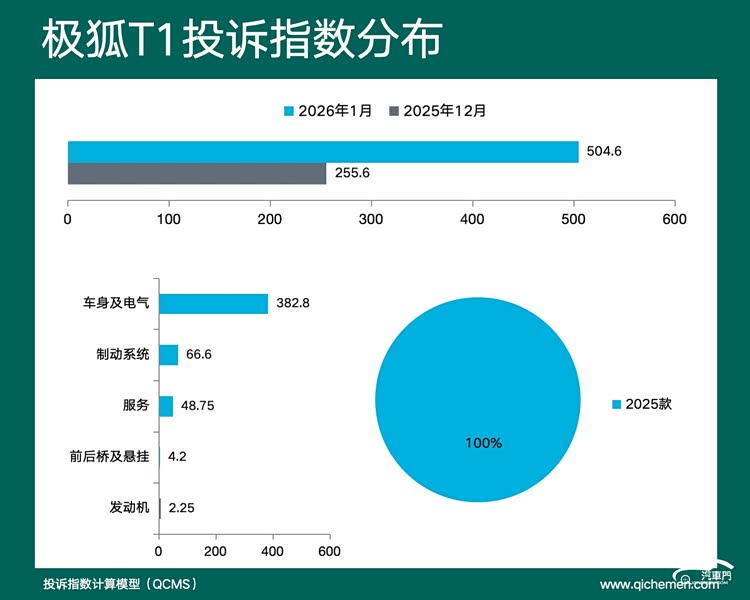 汽车质量投诉点评:极狐T1底盘护板减配问题在本月持续爆发,投诉指数环比上涨97.42%,投诉车型集中在2025款。该问题主要因极狐T1缺失底盘线束护板,面对裸露的线束车主担心存在安全隐患,进而依法集体维权。其中有车主通过4S店免费加装,但更多车主因底盘无固定位面临无法加装底盘线束护板的难题。