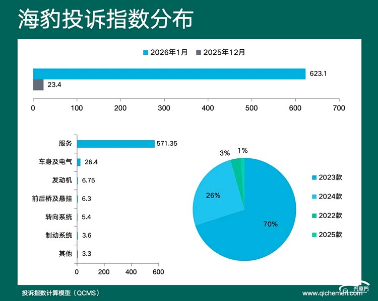 近日,汽车门网发布2025年1月车型投诉指数榜单。本月投诉榜单终于走出价格战的泥沼,开始被大量因质量问题上榜的车型占据。其中 海豹(参数|询价)空降榜首,眼看已经2026年曾经承诺的哨兵模式仍未到来引发车主集体投诉。极狐T1因底盘缺失线束护板,车主担心存在安全隐患进而投诉希望厂商能够加装。马自达3昂克赛拉爆发空调膨胀阀垫片生锈,厂商的垫片材质更换并未顾及车主利益。英朗和探岳则是转向卡滞和变速箱的老问题,老车主的坚持并未换来转机。