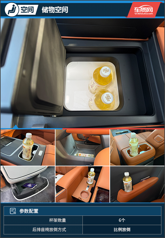 储物空间方面,中控台配备两个手机无线充电面板,方便主副驾驶乘客同时使用。下方还采用掏空设计,便于收纳随身挎包等较大物品。中央扶手内配备了冷暖恒温冰箱,支持-10℃快速制冰。同时,第二排和第三排的杯架和储物槽也一应俱全,充分照顾到全车乘客的日常使用需求。