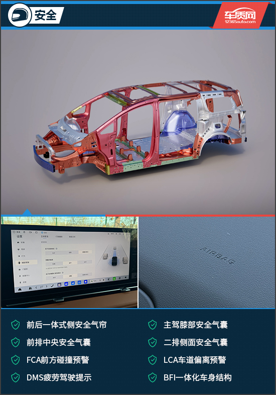 安全配置方面,评测车提供了丰富的主动和被动安全配置,除了常规功能之外,还提供了同级别罕见的主驾膝部安全气囊和前排中央安全气囊,能够为日常行驶提供全方位的安全防护。