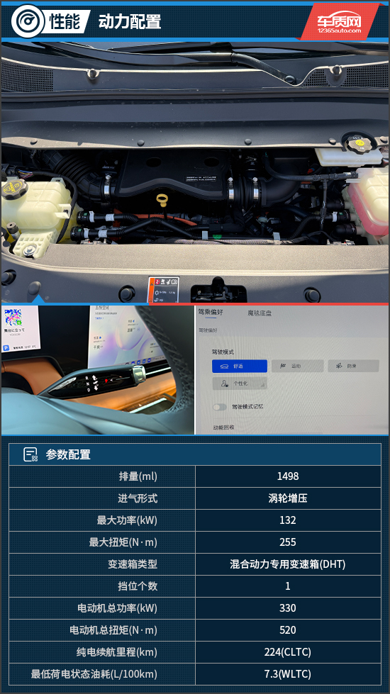 动力系统方面,别克至境世家基于“逍遥”架构打造,搭载由1.5T发动机+双电机组成的真龙插混Pro双电机四驱系统,系统综合功率可达462kW,综合扭矩为775N·m,CLTC纯电续航里程224km,综合续航里程1320km。