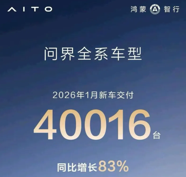 其中问界一月份销量达到了40016辆,同比增长83%,整个鸿蒙智行的月销量则达到了57915辆,同比增长65.6%,表现十分强劲;紧随其后的是小米,月销量突破了3.9万辆,同比增长70%,环比跌幅22%也是所有新势力中最小的;零跑月销量达到了32059辆,同比增长27%。
