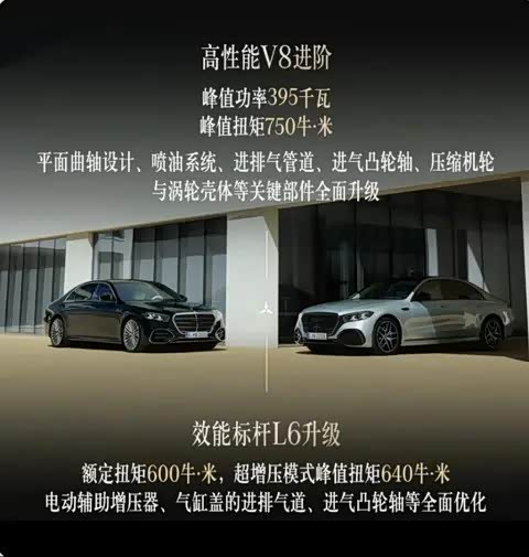 V8引擎(S580):备受关注的4.0T V8双涡轮增压发动机得到保留并升级。通过优化喷油系统和点火顺序,最大功率提升至530马力,峰值扭矩达到750牛·米。